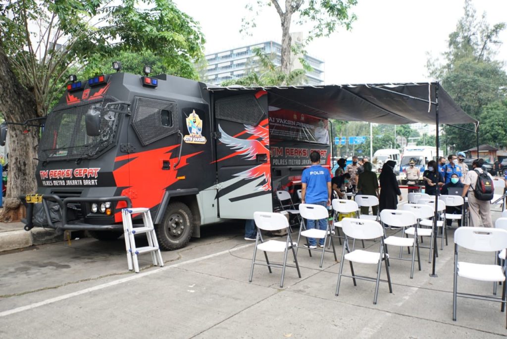 Hari Bhayangkara Ke 75, Polres metro jakarta barat Luncurkan Gerai Vaksin presisi Mobile