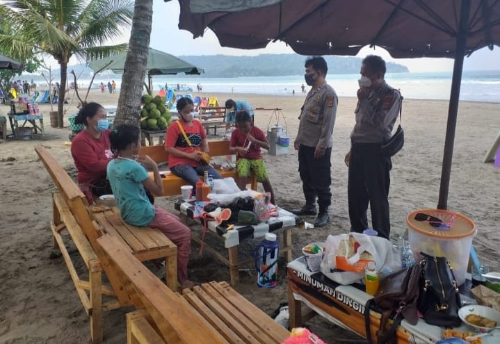 Plt Kapolsek Pangandaran Menghimbau Agar Wisatawan Selalu Disiplin Prokes